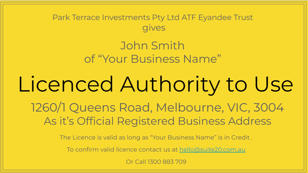We have access to the ASIC register and can check addresses. If you are found to be using the address without our consent, an invoice will be calculated based on your ASIC Business or Company renewal date. Note: This renewal can be up to 3 years in the future and the invoice could be over $1,200. If this invoice is not paid, a debt collection agency will be contacted to retrieve the funds.